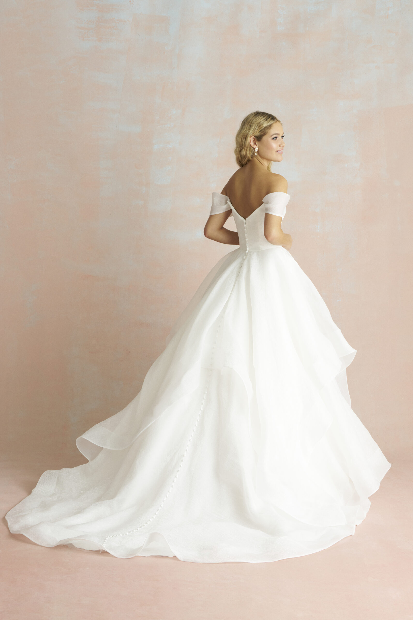 Float down the aisle in the enchanting beauty of Allure Bridals Romance R3865, a crushed organza ballgown designed for the bride who dreams in romance. The sweetheart neckline softly frames the décolletage, while delicate off-the-shoulder sleeves add an effortlessly feminine touch that feels both modern and timeless.